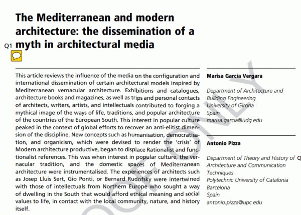 The Mediterranean and Modern architecture : the dissemination of a myth in architectural media [Recurs electrònic] / Marisa García Vergara